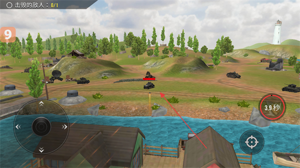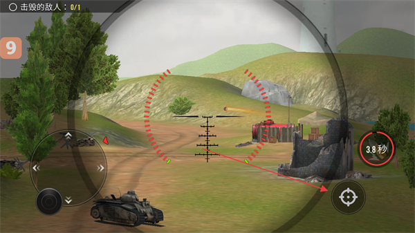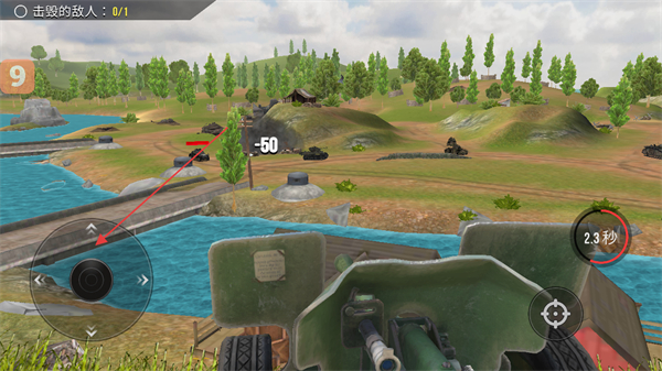 1、通過左側(cè)搖桿控制火炮移動(dòng),尋找敵方坦克,瞄準(zhǔn)后發(fā)起攻擊。