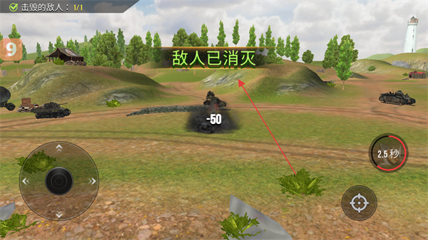 4、成功擊毀敵方坦克后,完成關(guān)卡目標(biāo),獲得勝利,繼續(xù)挑戰(zhàn)下一場(chǎng)戰(zhàn)斗。