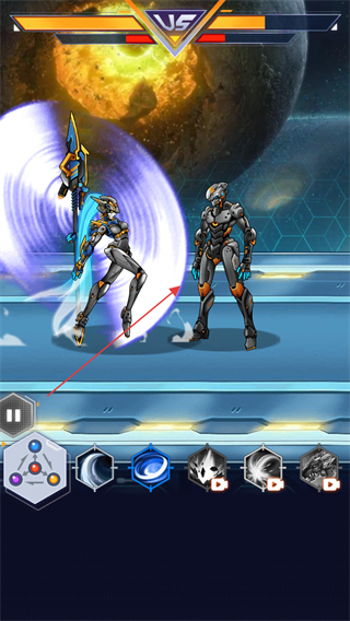 1、選擇藍(lán)色技能圖標(biāo),釋放技能,操控機甲戰(zhàn)士發(fā)起攻擊。