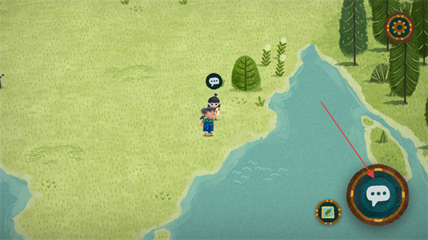 3、在探索地圖板塊的過程中,會遇到一些島嶼居民,點(diǎn)擊右下角按鈕與他們進(jìn)行對話。