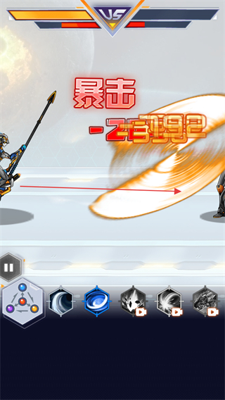 1、選擇技能,操控機甲戰(zhàn)士發(fā)起飛戟攻擊,對敵方機甲造成傷害。