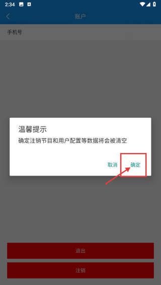 4、在提示框中,點(diǎn)擊確定按鈕,完成賬號(hào)注銷操作。
