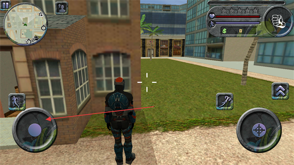 1、通過左側(cè)虛擬搖桿控制角色移動,在城市場景中自由探索。