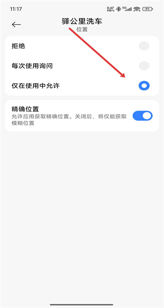 3、在位置權(quán)限設(shè)置界面,選擇僅在使用中允許選項,開啟定位權(quán)限。
