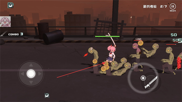 2、操控角色移動,點擊攻擊鍵攻擊僵尸,積累連擊數(shù),收集金幣。