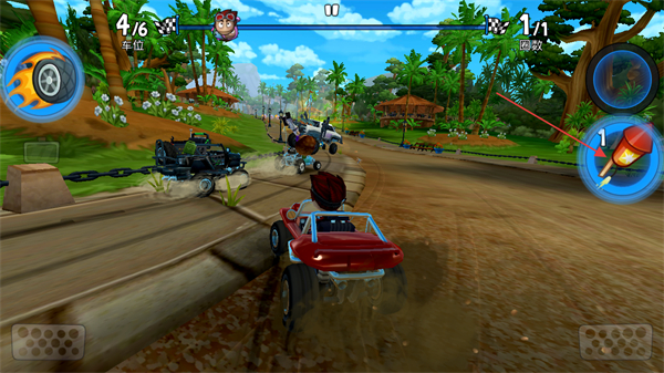 1、在比賽場(chǎng)上,可以利用各種手段超越前方車(chē)輛,利用右側(cè)道具攻擊車(chē)輛進(jìn)行超車(chē)。