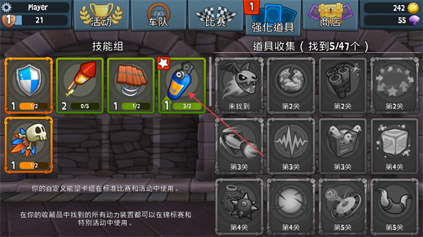 3、回到游戲主頁(yè)菜單膜電極強(qiáng)化道具,進(jìn)入道具收集菜單界面點(diǎn)擊可以升級(jí)的道具。
