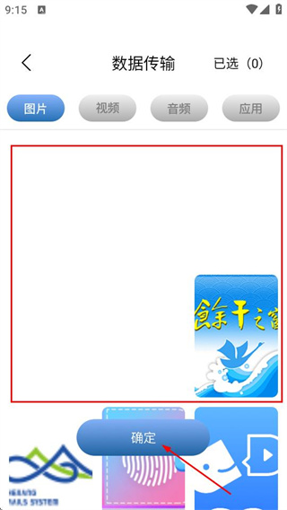 2、在數(shù)據(jù)傳輸頁(yè)面選擇要傳輸?shù)恼掌c(diǎn)擊確定。