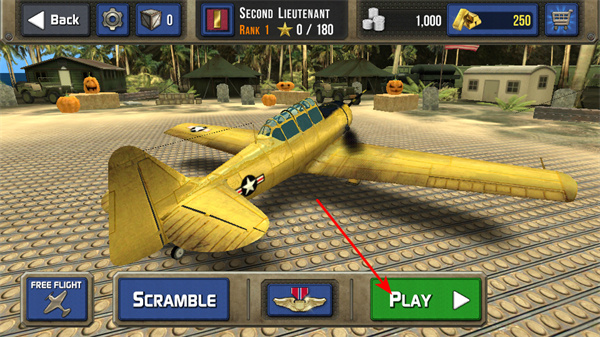 1、游戲中點(diǎn)擊PLAY按鈕,可進(jìn)入飛行任務(wù)關(guān)卡,開(kāi)啟游戲的關(guān)鍵操作,將駕駛飛機(jī)執(zhí)行任務(wù)。