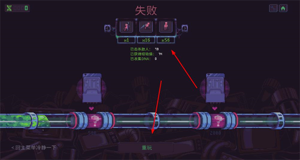 2、在戰(zhàn)斗失敗后,查看戰(zhàn)斗數(shù)據(jù),點(diǎn)擊重玩按鈕重新挑戰(zhàn)關(guān)卡,積累戰(zhàn)斗經(jīng)驗(yàn)與資源。