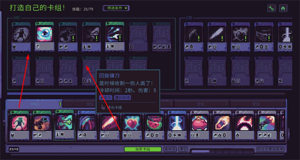 3、打造自己的卡組,選擇并搭配不同功能的卡牌,根據(jù)卡牌的冷卻時(shí)間、傷害等屬性。