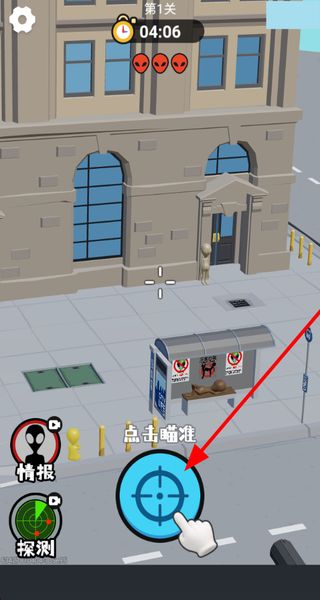1、找到目標(biāo)后點(diǎn)擊瞄準(zhǔn)按鈕,進(jìn)入瞄準(zhǔn)狀態(tài),為射擊做好準(zhǔn)備,提升擊中目標(biāo)的精準(zhǔn)度。
