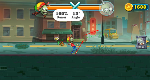 1、調(diào)整攻擊的力量和角度,精準(zhǔn)攻擊敵方僵尸,發(fā)起戰(zhàn)斗。