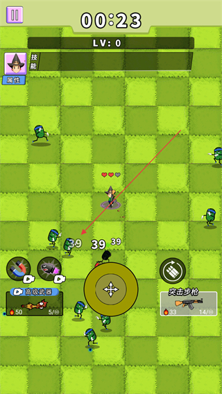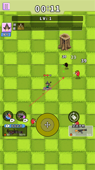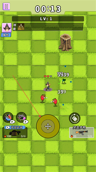 2、操控角色在綠色格子地圖中移動,用突擊步槍攻擊怪物,注意躲避怪物攻擊。