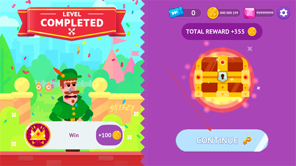 3、每局勝利后可獲得金幣、寶箱等獎勵,金幣可用于解鎖新角色、升級弓箭屬性,寶箱能開出稀有道具。