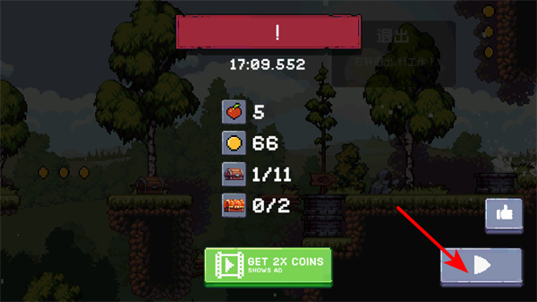 3、關(guān)卡結(jié)束后,點(diǎn)擊繼續(xù)按鈕可進(jìn)入下一關(guān),繼續(xù)前需關(guān)注本關(guān)獲得的資源如蘋果、金幣,后續(xù)關(guān)卡做好準(zhǔn)備。