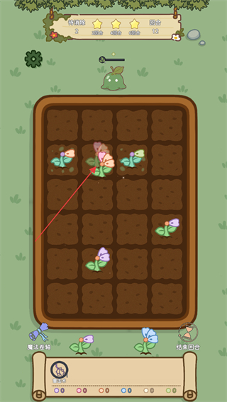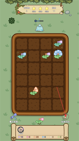3、當(dāng)下方?jīng)]有可以放置的花朵時,可以點擊結(jié)束回合放棄本輪放置進入下一回合。