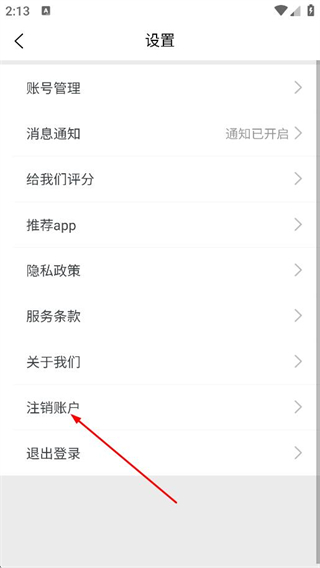 3、在設(shè)置頁面,點(diǎn)擊注銷賬號,進(jìn)入注銷賬號申請頁面。