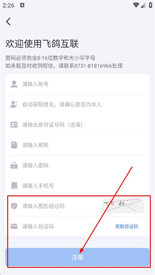4、填寫圖形驗證碼和短信驗證碼后,點擊注冊,完成賬號注冊操作。