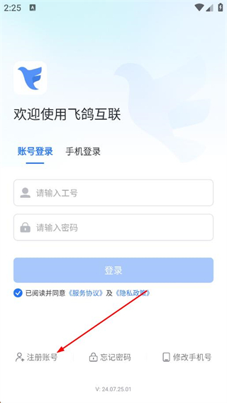 1、在飛鴿互聯(lián)登錄頁面,點擊注冊賬號,進入賬號注冊頁面。