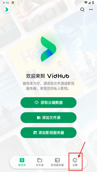 1、打開VidHub應(yīng)用,點(diǎn)擊底部設(shè)置選項(xiàng),進(jìn)入設(shè)置頁面。