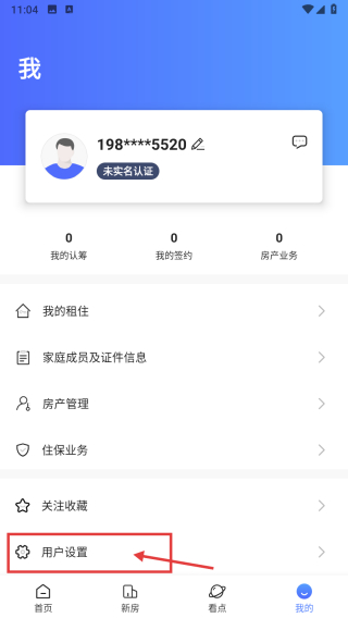 1、打開(kāi)房產(chǎn)類應(yīng)用,點(diǎn)擊底部我的選項(xiàng),進(jìn)入個(gè)人中心頁(yè)面。