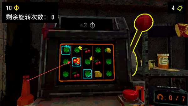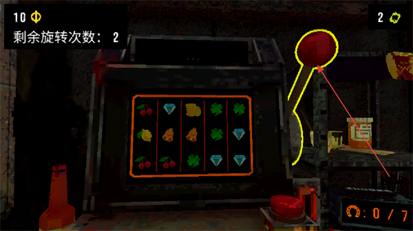 3、老虎機(jī)一次投幣有三次旋轉(zhuǎn)次數(shù),點(diǎn)擊手柄開(kāi)始老虎機(jī)旋轉(zhuǎn)。