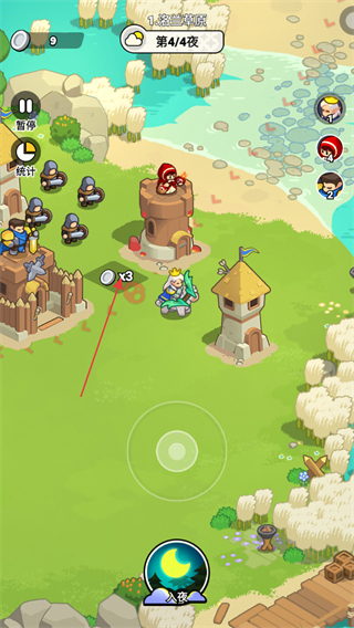 3、完成所有領(lǐng)地防御設(shè)施建設(shè)后,就可以點擊下方的入夜按鈕進(jìn)入夜間模式等待怪獸的降臨。