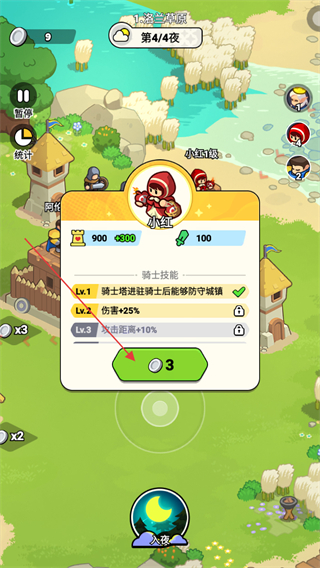 2、查看防御塔升級后的屬性差異,選擇需要升級的防御塔點擊下方按鈕進(jìn)行升級。