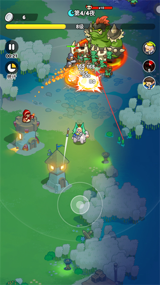 4、我們需要做的就是控制角色,擊退怪獸群保衛(wèi)領(lǐng)地的建筑不被受到破壞。