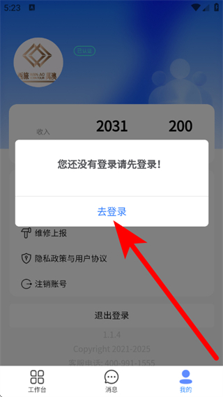 2、在彈出的提示框中,點擊去登錄,進(jìn)入登錄頁面。