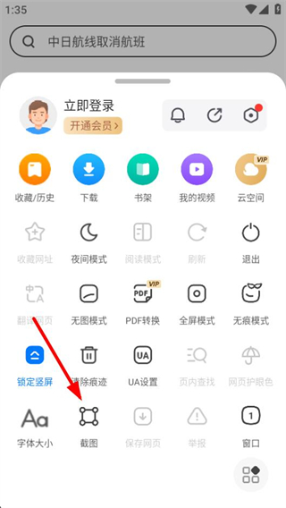2、進(jìn)入功能菜單頁面后,點(diǎn)擊截圖選項(xiàng),可觸發(fā)截圖操作界面。