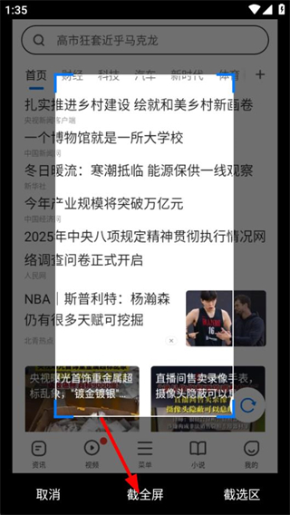 3、在截圖界面,點(diǎn)擊截全屏選項(xiàng),可對(duì)當(dāng)前頁面進(jìn)行全屏截圖。