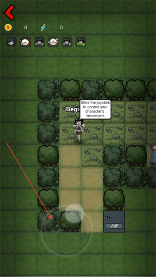 3、角色進入森林中,通過滑動屏幕任意位置控制角色移動,尋找安全的房間。