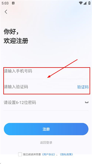 4、在注冊界面,輸入手機號碼,獲取并輸入驗證碼。
