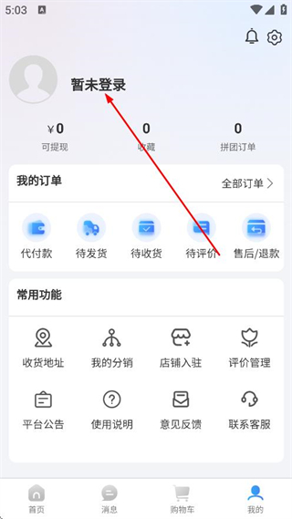 2、在個人中心頁面,點擊暫未登錄,進入登錄注冊界面。