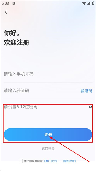 5、設(shè)置6-12位密碼后,點擊注冊,完成賬號注冊操作。