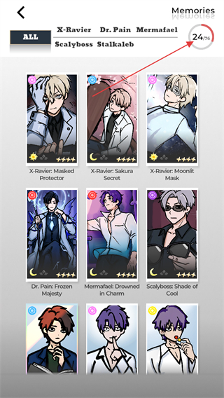 3、在卡冊(cè)的右上角可以看到目前收集的卡牌數(shù)量,下劃可以觀看獲取到的卡牌。
