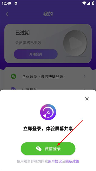 3、在我的頁(yè)面彈出的登錄窗口中,點(diǎn)擊微信登錄,完成賬號(hào)登錄。