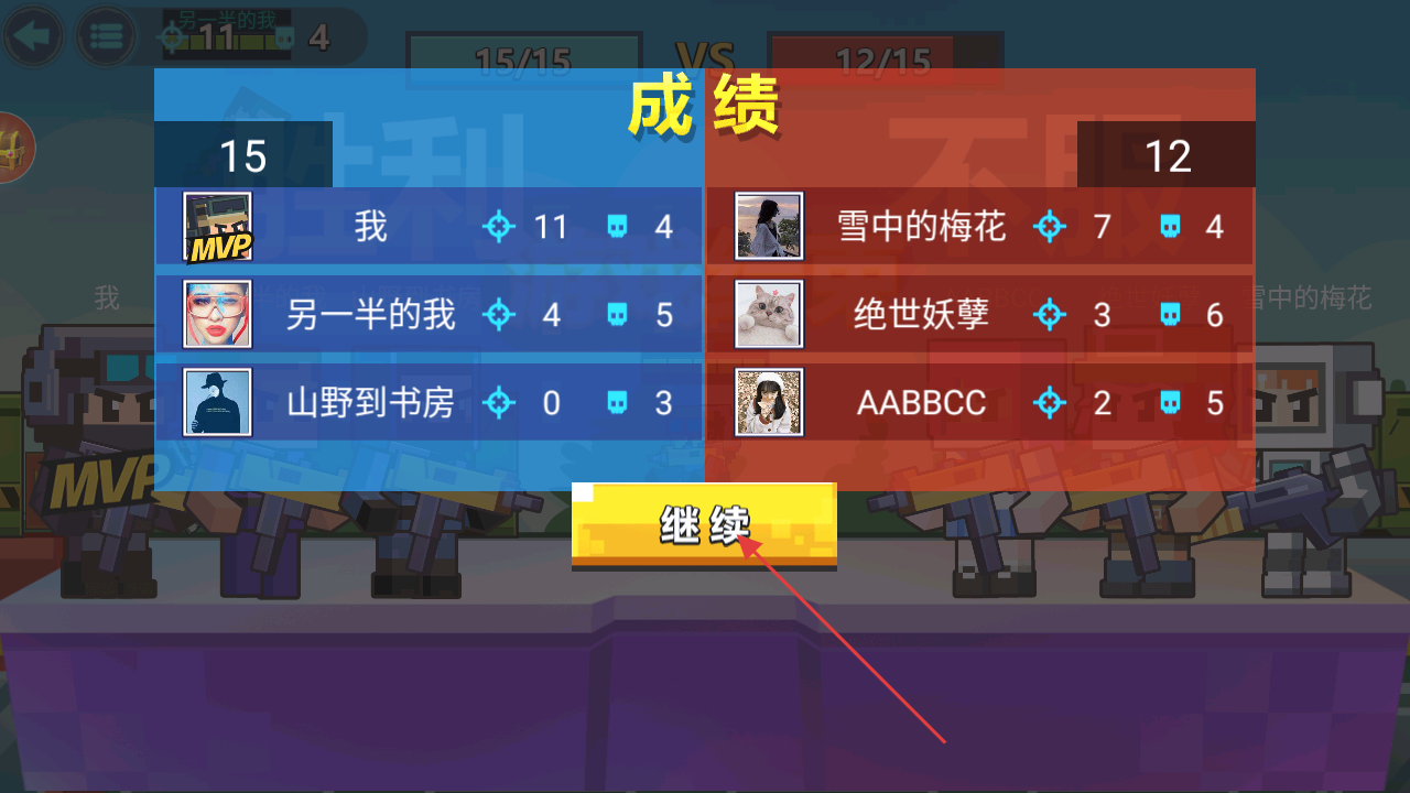4、達(dá)成擊殺目標(biāo)后,點(diǎn)擊繼續(xù)結(jié)算戰(zhàn)績,推進(jìn)游戲進(jìn)程。
