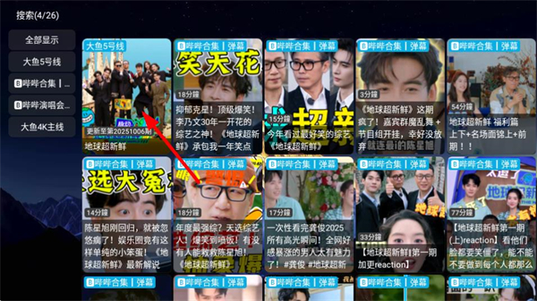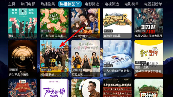 1、在大魚影倉首頁,點擊頂部導航欄的熱播綜藝選項,進入熱播綜藝頁面。