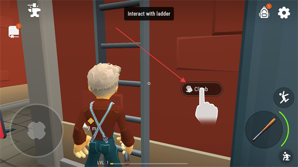 2、點擊Climb按鈕,與梯子交互開始攀爬。