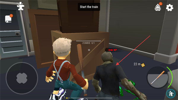 4、靠近僵尸,使用工具攻擊僵尸,同時向列車啟動點前進。