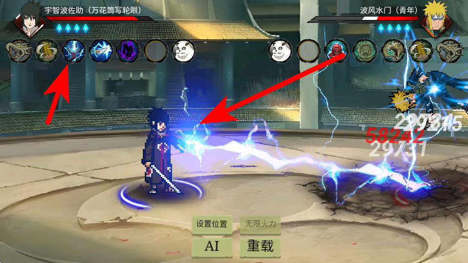 3、點(diǎn)擊技能欄中的對(duì)應(yīng)忍術(shù)如宇智波佐助的雷系技能,釋放技能造成傷害,這是對(duì)戰(zhàn)輸出的核心操作,通過(guò)連貫釋放技能持續(xù)消耗對(duì)手血量,推進(jìn)對(duì)戰(zhàn)節(jié)奏。