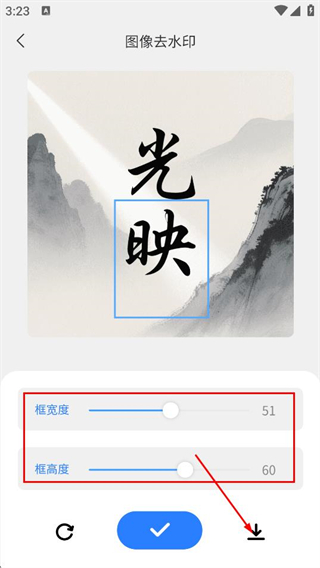 3、在圖像去水印頁面,調(diào)整參數(shù),完成后點(diǎn)擊保存按鈕,即可完成圖像去水印操作。