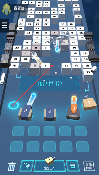 2、通過合成低級道具生成高級物品,解鎖上方區(qū)域的數(shù)字格子,積累金幣。