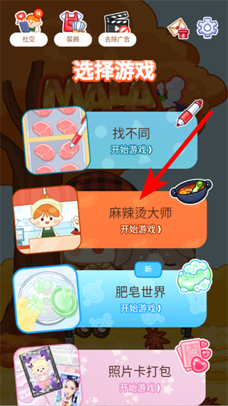 1、在選擇游戲界面,點(diǎn)擊麻辣燙大師對(duì)應(yīng)的開(kāi)始游戲按鈕,進(jìn)入該游戲。