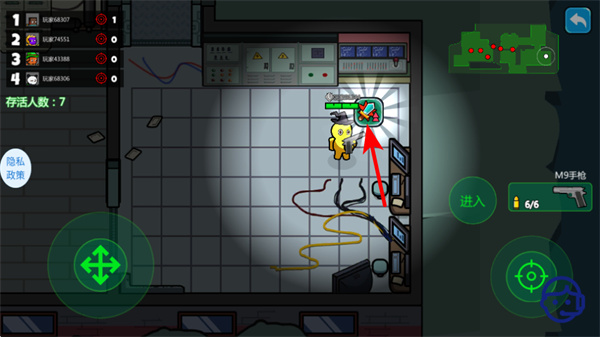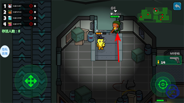 2、依照紅色箭頭指引點擊目標道具如補給箱,可拾取道具提升戰(zhàn)力,這是強化戰(zhàn)斗能力的核心步驟。