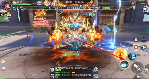 3、在與首領戰(zhàn)斗場景中點擊技能按鈕釋放技能,攻擊敵方目標,擊敗對手完成挑戰(zhàn)。