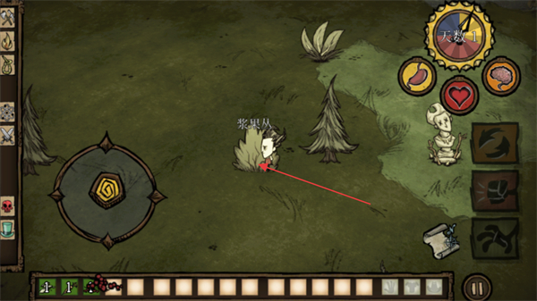 3、找到漿果叢,靠近后采集漿果,獲取食物類資源,維持角色飽食度。